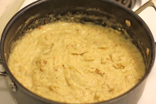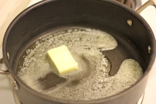 To make the sauce, melt remaining 6 tablespoons butter in a large saucepan. Add garlic and cook, stirring frequently, until fragrant, about 1 minute. Whisk in flour until lightly browned, about 1-2 minutes. Gradually whisk in chicken stock and cook, whisking constantly, until the sauce has begun to thicken, about 5 minutes; season with salt and pepper, to taste.