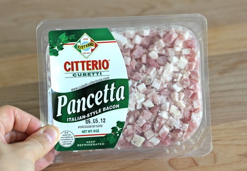 Letās first start off with some pancetta. I used to get it in a huge chunk from my local Italian bakery but Iāve been too lazy to drive all the way out there so I just pick up the pre-cut ones from Trader Joeās.