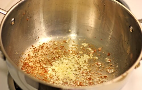 Add the garlic to the pan and saute until fragrant, about 1 minute.