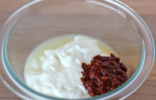 Then we’ll chop them up real good and mix them in with some sour cream and lime juice.