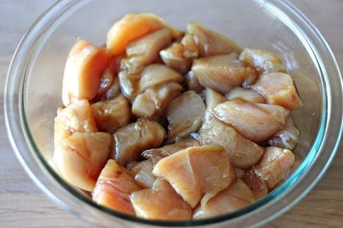 - 1 pound boneless, skinless chicken breasts, cut into 1-inch cubes