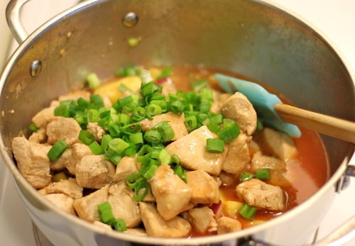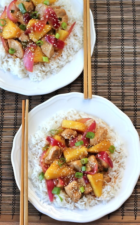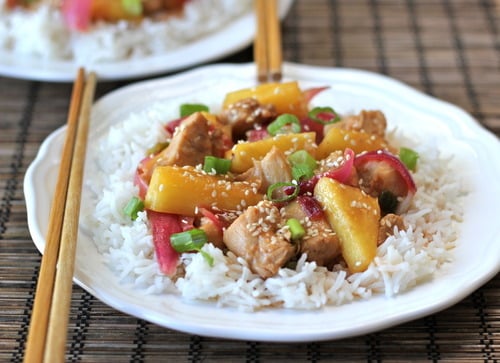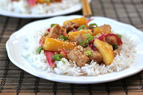 Sweet and Sour Stir-Fried Chicken with Pineapple and Red Onion (adapted from Tracey’s Culinary Adventures):