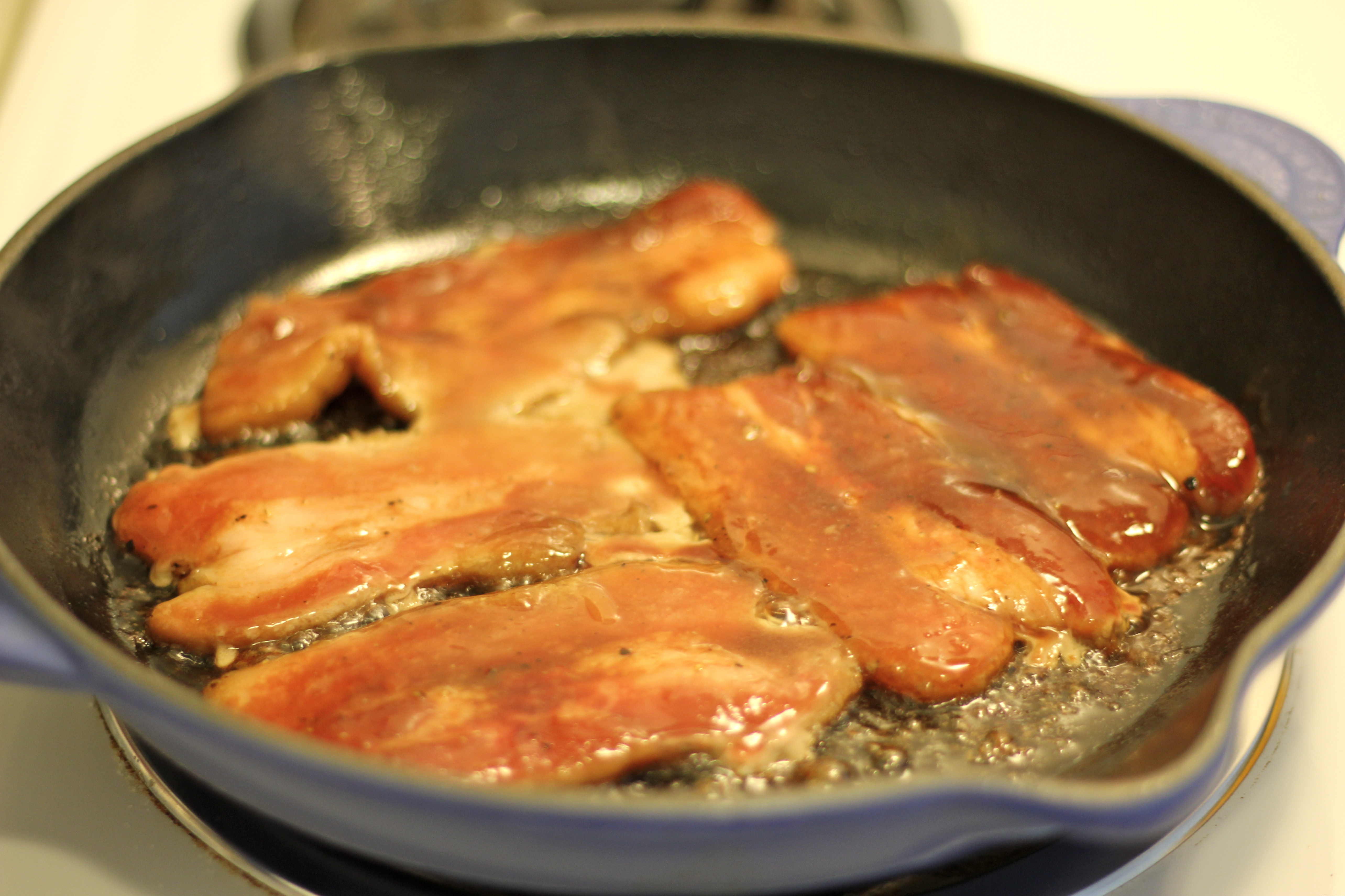 Flavor was so good for each element of this slider- but I need help with the pork belly. I had the butcher slice the pork belly for me into 1/4 inch slices – like thick bacon. She mentioned that she took off the skin and a lot of fat. The meat ended up tasting very “porky” – and less “bacony”. How do I get that rich texture inside with a crispy outside? #butchersfaultormine?