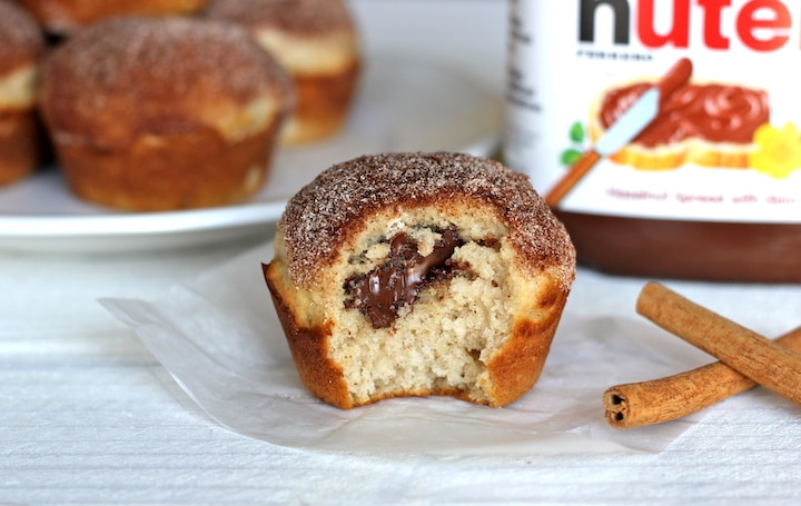 Cinnamon sugar crusted muffin tops with a hidden Nutella filling that everyone will love!