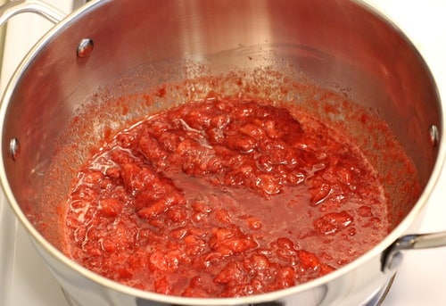 Bring it to a boil and then let it simmer until it starts to resemble a jam-like thickness. This should take about 15-20 minutes.