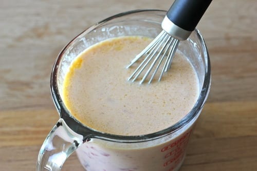 Next comes the wet ingredients – yogurt, butter, eggs, vanilla and 1/2 cup strawberry balsamic jam that we made earlier.