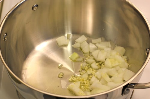 Let’s first start with the queso by sweating out some onions and garlic for about 3-4 minutes.