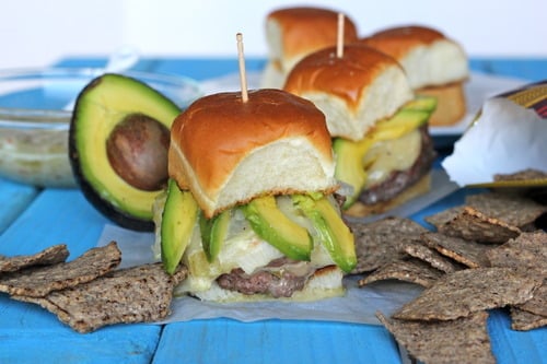 Stuffed Green Chili con Queso Cheeseburger Sliders (adapted from Confections of a Foodie Bride):