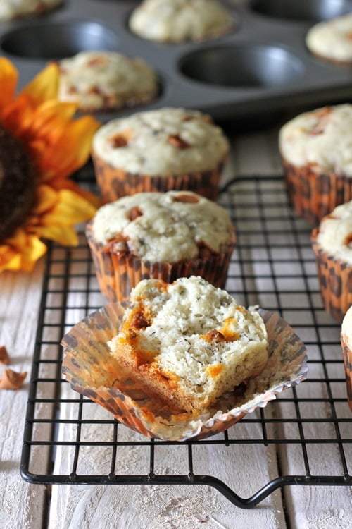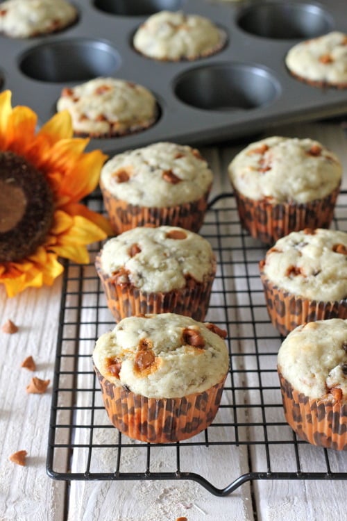 Now for this week’s installment of #MuffinMonday, I bring you banana muffins. But not just any kind of banana muffins. Sure, they’re wonderfully moist and fluffy with just a hint of sweetness but I’ve also added cinnamon chips. (If you’ve never had cinnamon chips, I highly recommend getting some soon because these are a freaking god send.) The cinnamon chips stay fully intact during the baking process but they melt into cinnamon goodness with every bite. They’re the perfect breakfast muffins, letting you indulge just a tiny bit with your morning cup of coffee.