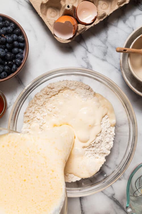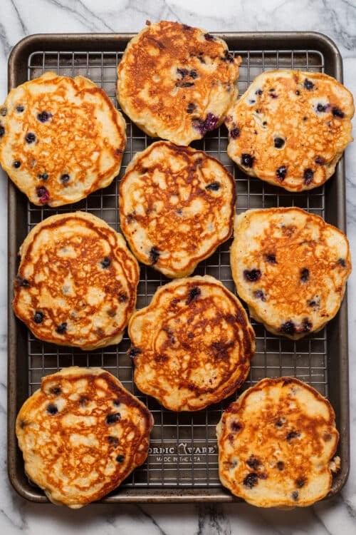 These were perfect made exactly as directed – just added extra blueberries:) The texture of the pancakes turned out fluffy and creamy, with a mild flavor that really lets the blueberries shine. Finished them with a dollop of greek yogurt and a drizzle of maple syrup. Perfectly delicious! Can’t wait to make these for my grown boys the next time they are home. Thank you for sharing this wonderful recipe.