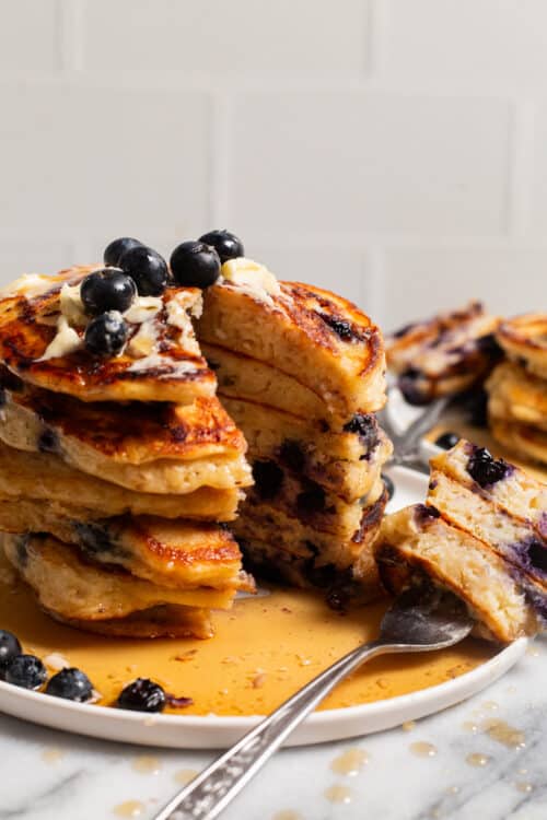What an awesome recipe! I didn’t make any changes other than extra blueberries. I made a blueberry syrup to give my family extra options. I love the texture of these pancakes, so fluffy! Everyone from my husband down to my 1 year old, really enjoyed them.