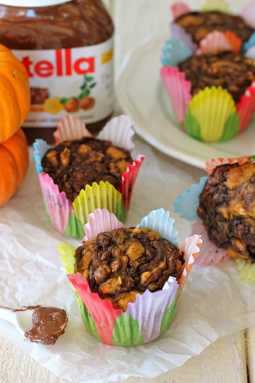 Pumpkin Nutella Swirl Oatmeal Muffins