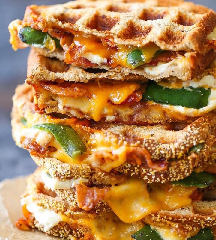 Everyone’s favorite jalapeño poppers made into the most epic grilled cheese. Made in a waffle maker! EASY and no mess!