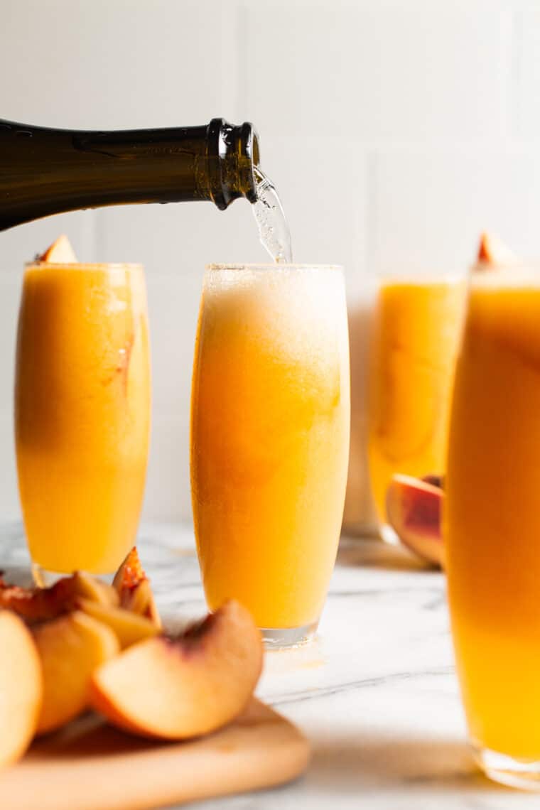 - Suitable for any occasion. These refreshing peach bellinis can be served at your next backyard BBQ, picnic, pool party, or family dinner, helping you keep cool on a hot summer day.