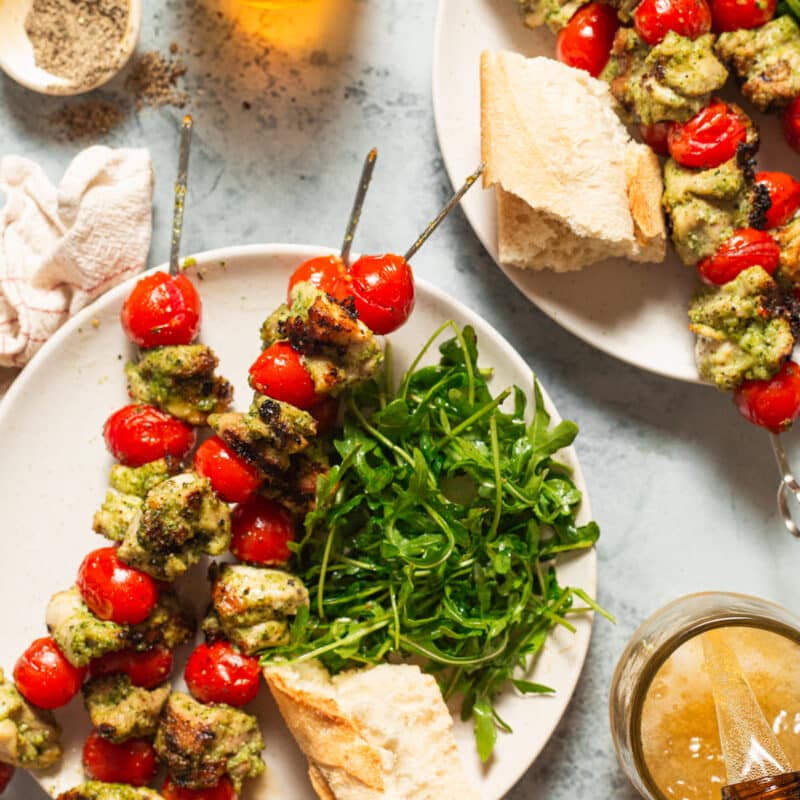 how to make the easiest chicken pesto kabobs