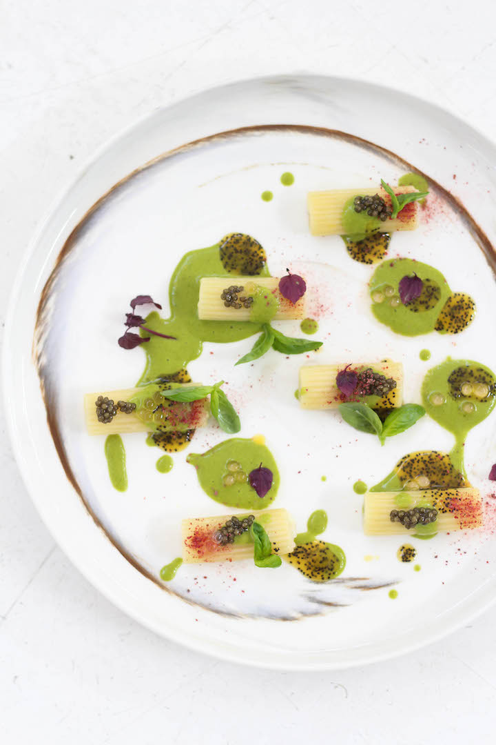 With his final dish, he created a seafood carbonara with no eggs and no dairy utilizing seafood eggs (rather than the traditional chicken eggs), green mandarin and red mazara shrimps.