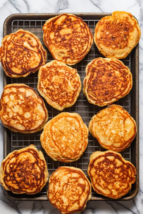 - Freeze as needed. Pancakes freeze very well (flash-freezing first), perfect for quick breakfasts on-the-go (or dinners!).