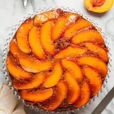 This Nectarine Upside-Down Cake recipe is brought to you by DAMN DELICIOUS